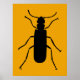 Silhouette eines Blisterkäfers gegen eine Halloween-Orangenfarbe.