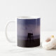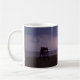 Schöne Kaffee-Tasse mit einem Foto eines Blitzbolzenstreiks über dem Ozean vor einem Leibwächterturm in Daytona Beach, Florida.