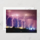Wunderschönes Foto phantastischer Blitzschlag bei Sonnenuntergang mit herrlichem Blick auf die dunkle Skyline, wenn sie sich dem Sonnenuntergang spät im Abend nähert