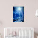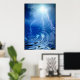 Drucken mit Blitz und Wasserspalte in blauen Farben