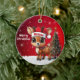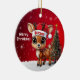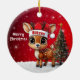 Blitzen! Celebrate the holiday season with this festive round ceramic red ornament featuring an endearing woodland forest animal cartoon graphic of a cute baby reindeer wearing a Santa hat, and Merry Christmas written in white. Perfect deer with antlers for decorating your tree or as a thoughtful gift, this whimsical doe decor makes a cherished keepsake for years to come. Customize by changing the text, the font, the font color, or remove the text. You can even transfer this design onto other products. Enjoy this design your way! Check out ForestBabies Xmas Deer Collection for matching decorations. 🎄🦌