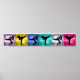 Plätze stürmischer Blitzdesigns in verschiedenen Farben, jede gefüllt mit einer Figur oder Figur der Kampfkünste, füllen diesen Plakatstreifen, den man als Rahmen an der Wand, oben oder in der Mitte aufhängen kann.