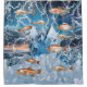 Ein surreales Kunstwerk von Fischen, die durch einen Sturm fliegen