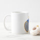 Eine blaue Hochleistungs-Taschenlampe. Dieses Design sieht auf dieser Tasse wirklich effektiv aus