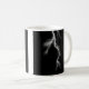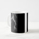 Foto eines Blitzes gegen den schwarzen Himmel. Design auf beiden Seiten der Tasse.