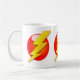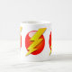 Eine lebendige Grafik eines gelben Blitzes über einem roten, kreisförmigen Hintergrund, die Geschwindigkeit, Power und Energie symbolisiert und an die Superhelden-Ikonographie erinnert.