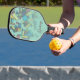 Dieses Pickleball-Paddel besticht durch ein spielerisches und einzigartiges Design mit einem minzgrünen Hintergrund. Farbenfrohe geometrische Blöcke scheinen von der Spitze des Paddels zu fallen, was eine skurrile und dynamische Szene schafft. Der Name des Spielers wird unten angezeigt und fügt diesem auffälligen und lustigen Design eine personalisierte Touch hinzu. Dieses aus robustem Grafit gefertigte Paddel bietet hervorragende Kontrolle und Power für jeden Schuss, von exakten Dinkten bis hin zu kräftigen Stößen. Egal ob Sie ein erfahrener Spieler sind oder gerade erst anfangen, dieses personalisierte Paddel lasse Ihnen, den Platz mit Zuversicht und einem unverwechselbaren Look zu erreichen. Es ist eine ideale Mischung aus individuellem Stil und konkurrenzfähiger Leistung, die sicherstellt, dass Sie eine Aussage mit jedem Spiel machen.