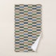 Dieses Badetuch-Set mit Offsetblöcken oder Streifen in Schieferblau, Waldgrün, Braun, Beige und Bräune.