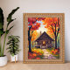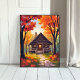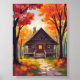 Blockhütte | Wasserfarbenes Herbstlaub-Wald Poster