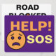 blockierte Straße, Hilfe Autosignatur, BEHALT diese in IHREM AUTO, um LEICHT ZU ANDEREN ZU KOMMUNIZIEREN, WÄHREND DER FAHRT