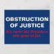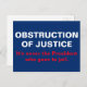 Text: Behinderung der Justiz Es ist nie der Präsident, der ins Gefängnis geht. Weiße und rote Buchstaben auf blauem Hintergrund. Der Widerstand setzt sich jeden Tag fort, mit jeder Handlung und jedem Protest.