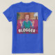 Blogger T - Shirt Dies ist ein Blogger Career T - Shirt. Das Design des Bloggers wurde mit generativen Kunstwerken entworfen und zeigt eine Comic-Illustration einer Frau, die auf einem Sofa sitzt und glücklich lächelt. Die Frau trägt ein blaues Shirt und eine grüne Weste. Im Hintergrund befindet sich ein Wohnzimmer mit Pflanze und Lampe. Der Text Blogger ist unter der Frau. Der T - Shirt ist ein blauer T - Shirt. Das Bild befindet sich auf der Vorder- und Rückseite des T - Shirt. Sie können das Bild mit der Schaltfläche Anpassen ändern.