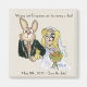 Mopsy und Benjamin werden getroffen, werden ein Duett, eine Kombi, binden den Knoten und werden glücklich sein, nach dem Leben der Ehe. Zwei niedliche Cartoon Hasen in Tux und Gown mit einem Karottenbukett. Bearbeiten Sie den Text für Ihren Hochzeitstag und besondere Redewendungen. Dies macht eine niedliche Erinnerung an Cartoon-Ehen zum Sake für wütende Mohnblüten-Beziehungen.