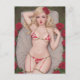 AI generierte Kunst eine schöne Blondine in einem roten Bikini umgeben von rote Rosen.