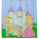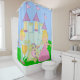 Ein niedlicher und farbenfroher Duschvorhang für die kleine Prinzessin ist mit einer königlichen Burg, einer Prinzessin mit blondem Haar und einem hübschen lila Polka-gepunkteten Kleid, einem Prinzen mit Krone, Schwert und Schild sowie einem mit Polka gepunkteten Drachen ausgestattet!