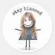 Blond-Strichfigur-Mädchen in Sneakers Runder Aufkleber