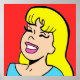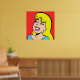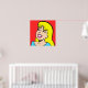 Dieses Blonde Bombshell Comic Strip Poster mit einem Comic-Stil zeichne von einem schönen, blonden Mädchen auf einem roten Hintergrund. Sie hat eine Knopfnase, volle rosa Lippen und die hellsten Lächeln. Ihre Augen sind geschlossen, wahrscheinlich wegen des Gewichts ihrer üppigen, schwarzen Wimpern. Sie hat einen dicken Rand von Knallen und fließend gelbem Haar, das sich über ihre Schultern erstreckt. Ihr Aqua-Shirt ist am unteren Ende des Designs kaum sichtbar. Sie sieht so aus, als hätte sie auf der Welt keine Pflege. Und eigentlich sollte sie sich in der Welt nicht kümmern. Schließlich ist sie Cartoon.
