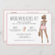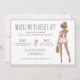 Wasserfarbenes Bachelorette Beach Party Wochenende Einladung mit Aquarell Blonde Braut-to-be. Veranstaltungsdetails auf der Rückseite der Einladung. Kann für jedes Ereignis angepasst werden. Fingergrößen auf der Rückseite für Geschenke oder Panty Game.