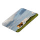 Der rechteckige Foto-Magnet mit einer Blonde d'Aquitaine-Kuh, die unter Wolken in einer Wiese in der französischen Region Dordogne auf den Betrachter schaut.
