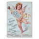 Ein Engel hält die Cologneflasche. Er ist für WaldBlume von New York und es ist- eine Vintage Anzeige.