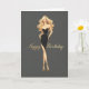 A timeless and sophisticated birthday card featuring a glamorous blonde in a sleek black dress with gold accents, set against a dark, elegant background. Perfect for celebrating someone with refined style, confidence, and effortless presence.