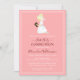 Laden Sie Freunde und Familie ein, um Ihre Töchter Erste Kommunion zu feiern, mit dieser schönen Einladung, in der ein blondes Mädchen in einem weißen Gemeinschaftskleid mit einer Bibel auf einem weichen rosa Hintergrund steht. Zurück mit weichem rosa Hintergrund und doppelweißem Rahmen mit Kreuz- und Weißbanner mit Text "Meine erste Kommunion". Einfach zu personalisieren mit benutzerdefinierten Optionen. Verwenden Sie die Schaltfläche "Personalisieren", um das Produkt anzupassen oder Text hinzuzufügen.