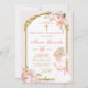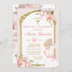 EDITABLE Blonde Girl Gebet Florentiner Erste Heilige Kommunion Einladung Elegant Weiß und Rosa Blütenweih Christening Erste Heilige Kommunion Einladung Gold Kreuz Niedliche Girl Primera Comunión Einladung