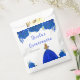 This Quinceanera favor bag features faux glitter royal blue floral flowers and a beautiful princess with blonde hair and an elegant dress. This is perfect for a Quinceanera birthday party.