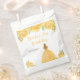 This birthday party favor bag features faux glitter gold floral flowers and a beautiful princess with blonde hair and an elegant dress. This is perfect for a birthday party.