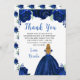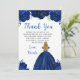 This birthday party thank you card features faux glitter navy blue floral flowers and a beautiful princess with blonde hair and an elegant dress. This is perfect for a birthday party.