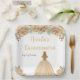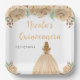 This Quinceanera plate features faux glitter champagne peach cream floral flowers and a beautiful princess with blonde hair and an elegant dress. This is perfect for a Quinceanera birthday party.