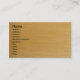 Geschäftskarte druckte über einem Hintergrund-Foto des lackierten blonden farbigen Holzes. Für Tischler Möbelhersteller, Möbelverkäufer, Bodeninstallateure.
