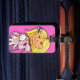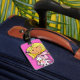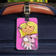 Niedliches Gepäckanhänger ideal für Kinder. Dieses Namensschild hilft Ihnen, Ihr Gepäck zu finden. Personalisieren Sie mit Ihrem Namen und Ihrer Adresse auf der Rückseite. Nützliche Gepäckmarke mit einem Mädchen, das ihr kuscheliges, gestopftes, sonniges Kaninchen hält. Grafische Kunstwerke und Design von Sarah Trett.