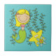 Eine lächelnde blonde behaarte Meerjungfrau underwater mit der Meerespflanze und den gelben Starfish, ein niedlicher Ozeanthemaentwurf für Mädchen die Liebemeerjungfrauen. Meerjungfrau-T-Shirts, Bodysuits, Schellfische, Decken, Burpstoffe, Magneten, Karten, Taschen, Aufkleber, Schlüsselketten, mousepads, Kissen, Wanduhren, Andenken und viel mehr!