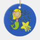 Eine lächelnde blonde behaarte Meerjungfrau underwater mit der Meerespflanze und den gelben Starfish, ein niedlicher Ozeanthemaentwurf für Mädchen die Liebemeerjungfrauen. Meerjungfrau-T - Shirts, Bodysuits, Schellfische, Decken, Burpstoffe, Magneten, Karten, Taschen, Aufkleber, Schlüsselketten, mousepads, Kissen, Wanduhren, Andenken und viel mehr!