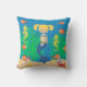 Dieses schön unter der Seequadrat-Wurfskisseneigenschaft als Meerjungfrau mit dem blonden Haar in den Zöpfen schwimmend im Ozean mit ihren Seegeschöpffreunden. Einige Grafiken durch AMBillustrations.