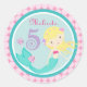Blonde Meerjungfrau schwimmen mit Fischen Geburtstagsaufkleber. Alter 5.
