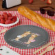 Teller mit Halbpension Baby Duschpapier mit niedlichen blonden Prinzen und Prinzessinnen mit hübschen Silberkronen auf Kreidebannerhintergrund. Sie können Text unter dem Banner hinzufügen, um zu personalisieren, und Sie können den Text im Banner ändern.