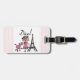 Diva-T - Shirts, Bodysuits, Tassen, Taschen, Karten, Aufkleber, Schlüsselketten, Kissen, Wanduhren und viel mehr mit einem niedlichen Divaentwurf, der ein blondes behaartes Mädchen in einem Hut und in einem rosa Kleid mit ihrem rosa Pudel nahe dem Eiffel-Turm kennzeichnet!