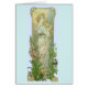 Ein blondes Mädchen steht mit einem Stock in einer hübschen Landschaft. Rosa gladiolas sind in der Front. Es ist Kunst nouveau von den frühen zwanziger Jahren.