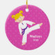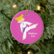 Personifizieren Sie leicht dieses scherzt Kampfkünste Weihnachtsverzierung. Eine niedliche blonde behaarte Mädchenillustration, eine weiße Uniform und einen lila Gurt auf einem rosa Hintergrund mit Sternen tragend. Vervollkommnen Sie für jeden möglichen wenigen Karate- oder Taekwondo-Studenten. BEVOR Sie Ihren Auftrag vergeben -- Treten Sie mit uns für FREIE FARBE ÄNDERN in Verbindung (Gurtfarbe, Haarfarbe, Hintergrundfarbe, etc.)