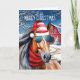 Auf diesem MAREy Weihnachtsgrüßchen wartet ein schönes Pferd aus der Blutbucht mit einer roten Scheune im Schnee und Winterkleidung auf die Pisten.