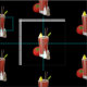 Ein Glas Bloody Mary Cocktail mit Zitronenscheibe. Eine ganze Tomate, Salz und Pfeffer. Nahtloses Muster. Benutzerdefinierte Hintergrundfarbe.