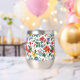 Sip in style with the *Bloom Boldly* stemless wine tumbler. Featuring a lush floral pattern full of vibrant blooms and greenery on a crisp white background, this tumbler brings joy to every pour. Whether you're enjoying a chilled rosé or a sparkling mocktail, this insulated tumbler keeps your drink the perfect temperature—while keeping your vibe bold and beautiful.