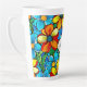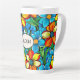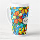 This small latte mug features a vibrant floral pattern bursting with color—sunny yellows, warm oranges, deep reds, and refreshing blues set against a rich blue background. The tall, tapered silhouette highlights the artwork beautifully, giving the design a refined, café‑style look. At the center, an elegant oval label with the word BLOOM adds a touch of inspiration, celebrating growth, positivity, and everyday joy. The shape of the mug makes it perfect for lattes, cappuccinos, tea, or any warm drink enjoyed slowly and with intention.