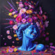 "Bloom of Eternity" - ein farbenfrohes, surreales Portrait. Dieses Stück verbindet die Dauerhaftigkeit der Skulptur mit der flüchtigen Dynamik der Blume und schafft einen visuellen Dialog zwischen Stille und Wachstum. Die ruhige blaue Figur erscheint zeitlos, doch gekrönt von einer Explosion strahlender Blüten, die mit dem Leben zu pulsieren scheinen, und symbolisiert die Wiedergeburt, Kreativität und die andauernden Schönheitszyklen, die sowohl in der Natur als auch in der Kunst zu finden sind.