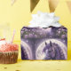 Vor Vollmond mit violetten Blumen in ihrem Mane fotografiert, ist ein Hübsches Lila Fantasiepferd.