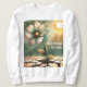 Flower blooming through cracks in the sun. The message "Bloom through the cracks" honors the power of rebirth from the broken. Spiritual and symbolic design