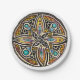 Spaß und farbenfroh trifft wilde und elegante Bohemian. Das präsentierte Kunstwerk ist ein lebendiges, kreisförmiges Mandala-Design, das in kühnen und lebhaften Farbtönen gestaltet wurde. Das komplexe Muster besteht aus fünf primären, blumigen oder blättrigen Formen, die von einem zentralen Punkt aus ausstrahlen und jeweils mit blauen und aquamarinen Abschnitten geschmückt sind, die das Auge gezeichnet haben. Diese Primärformen sind in einem Hintergrund aus goldgelb und schwarz gehalten, die einen starken und auffallenden Kontrast bilden und die Dynamik der zentralen Elemente verstärken. Die Verwendung von schwarzen Linien, um einen Webbetteffekt zu erzeugen, verleiht der Komposition ein Gefühl von Tiefe und Komplexität, indem sie sich nahtlos durch die goldene Kulisse weben. Die Symmetrie und Ausgewogenheit des Designs sind lobenswert und zeigen eine sorgfältige Aufmerksamkeit für Details und Harmonie in der Komposition. Der Künstler demonstriert ein gutes Verständnis der geometrischen Ästhetik und den Power der Wiederholung, die Kennzeichen der mandalanischen Kunst sind. Das Wechselspiel zwischen Blau, aquamarin und Gelb schafft ein dynamisches visuelles Erlebnis, das den Blick des Beobachters um das Stück lenkt. Die Verwendung von Schwarz bietet nicht nur Kontrast, sondern verleiht dem komplexen Design auch ein Gefühl der Definition und Struktur, wodurch die Komposition nicht chaotisch oder überwältigend wird.