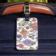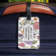 Bloomsbury Design auf einem Gepäckanhänger. Passen Sie es mit Ihrem Namen und Ihrer Adresse an. Erkennen Sie Ihre einzigartige Marke beim Karussell.